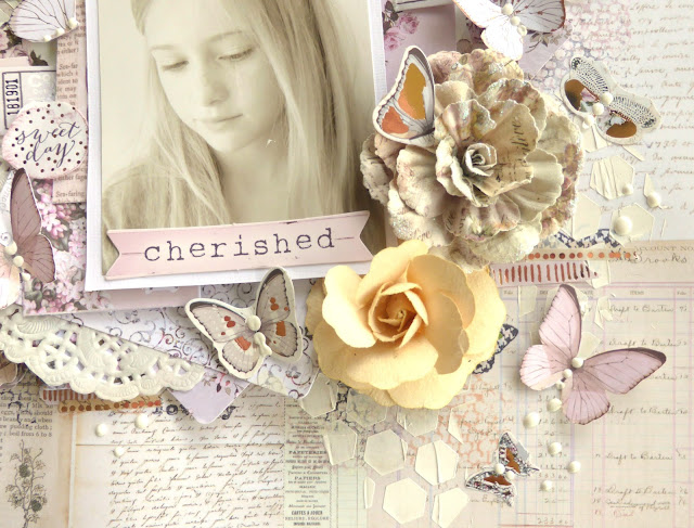 I used Prima acrylic paints on the chipboard in this layout, they are perfect to colour chipboard.